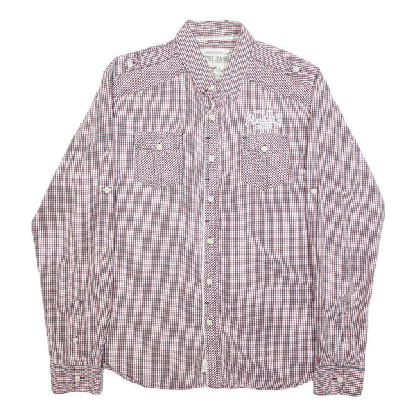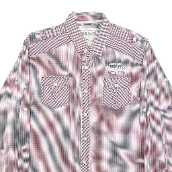 DIESEL Mens Red Blue Check Shirt L Casual Cotton Button Long Sleeve