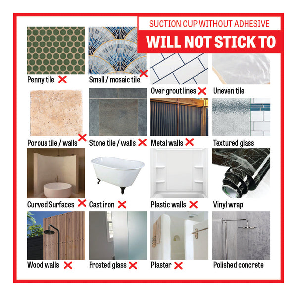No tools. No Damage. Renters' delight! This rack is intended for non-porous surfaces only (glass and tile).
