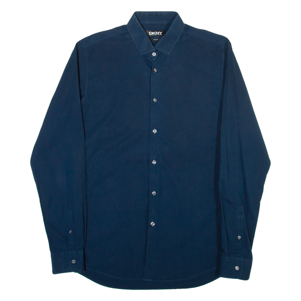 DKNY Slim Fit Mens Plain Shirt Blue Long Sleeve M