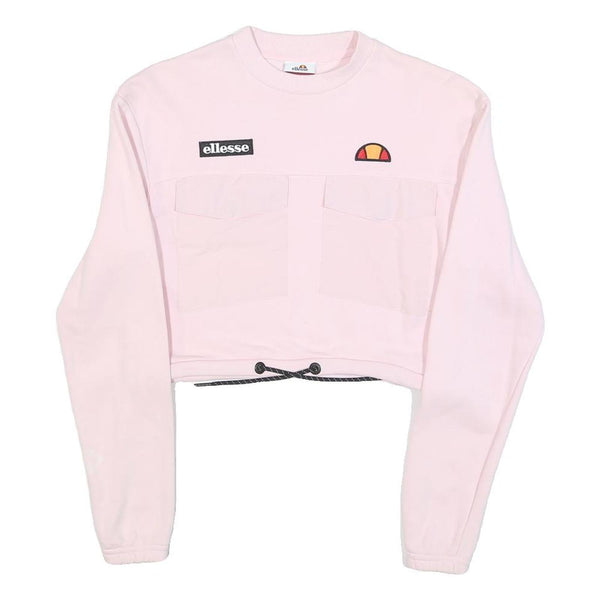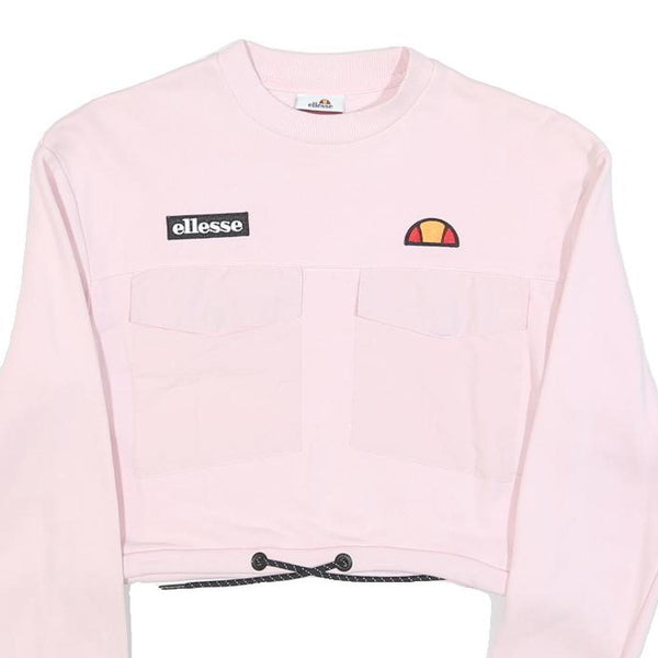 ELLESSE Womens Pink Cotton Blend Crop Sweatshirt UK 4 Crew Neck Long Sleeve