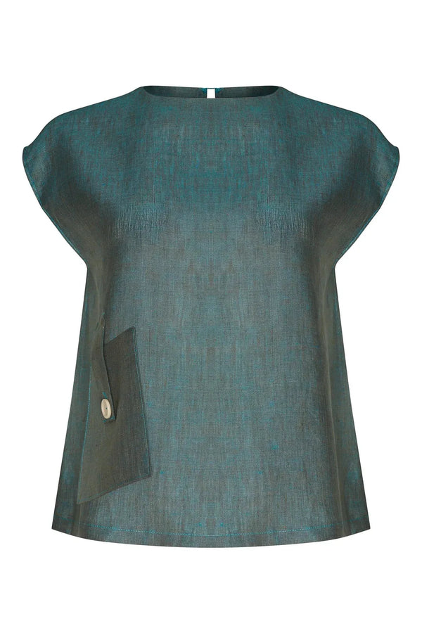 Cut to a relaxed silhouette, the Emil Top is an easy-to-wear cap-sleeved linen top, embellished with off-angle pocket squares.