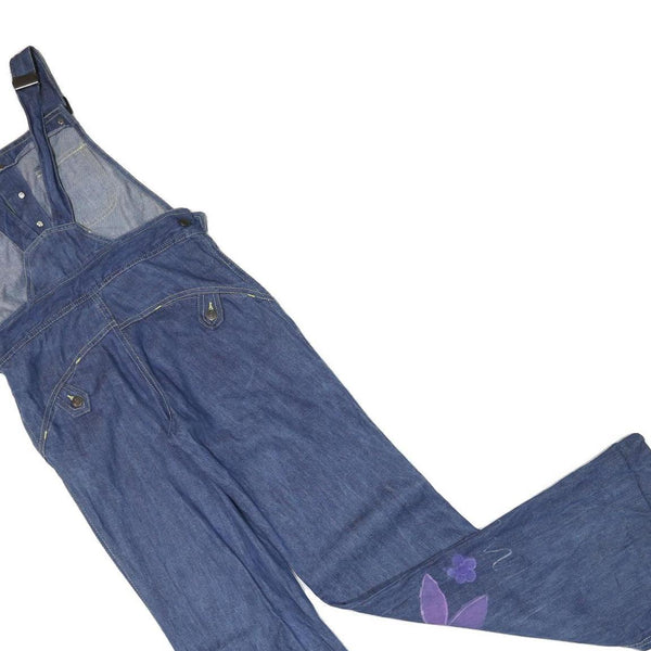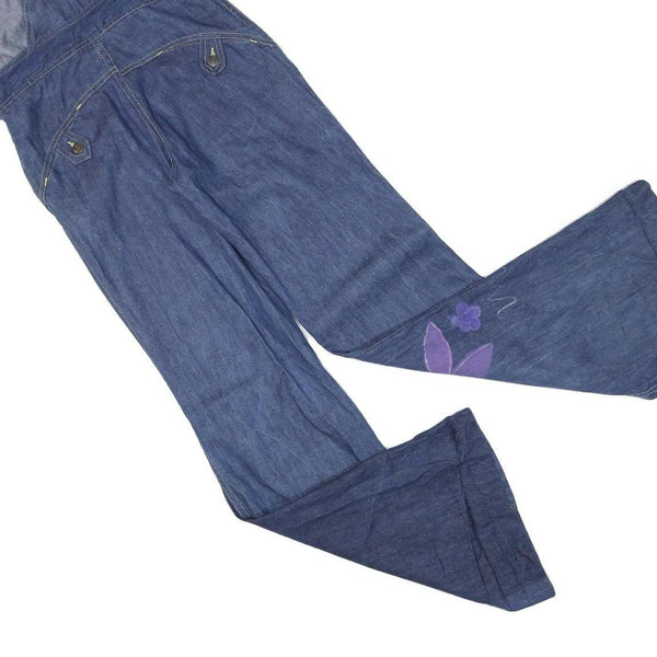 FADED GLORY Womens Blue Denim Dungarees Loose Cotton Blend XXS W28 L34 Floral