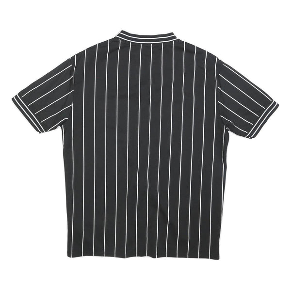 Made from polyester, the fabric has a smooth, lightweight feel with a slight sheen, providing comfortable wear and easy care. The relaxed regular fit offers freedom of movement suitable for casual or sporty styling. The button-up front adds authentic baseball shirt appeal with practical function.