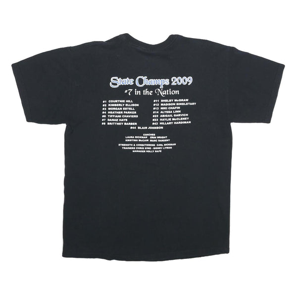 Crafted from soft cotton fabric, the shirt offers a relaxed fit with short sleeves and a classic crew neckline, ideal for everyday wear. The back showcases a detailed print listing a 2009 State Champs softball team along with player names, coaches and trainers, providing a unique vintage sports vibe.