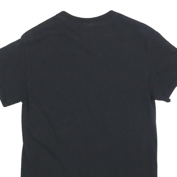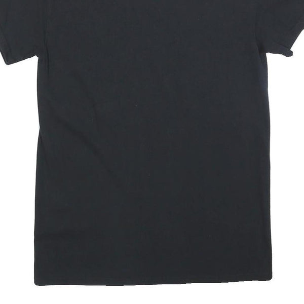 Tailored for a regular fit, this short-sleeved T-shirt has a classic crew neckline and a straightforward cut ideal for everyday wear or casual outings. The black cotton blend material feels soft against the skin, balancing comfort with durability. The back is plain black with no additional detailing, focusing attention on the bold front graphic.