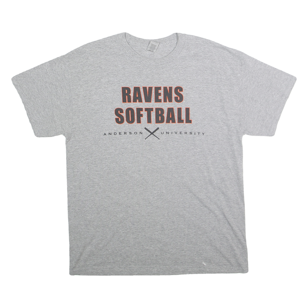 GILDEN Mens Grey Ravens Softball Graphic T-Shirt L Short Sleeve Crew Neck