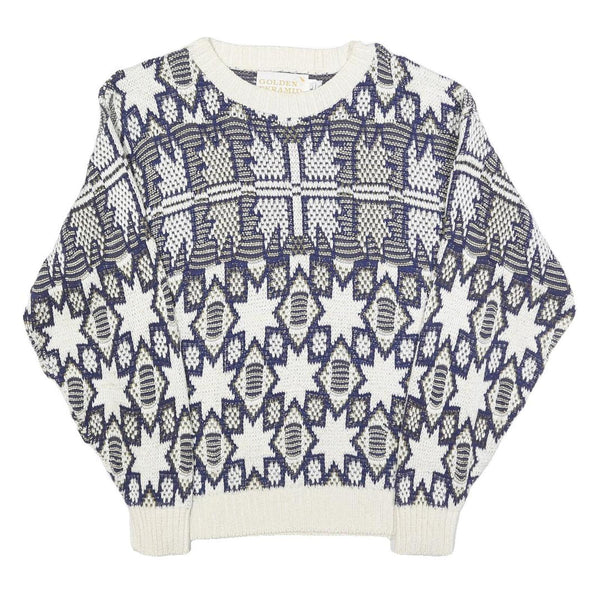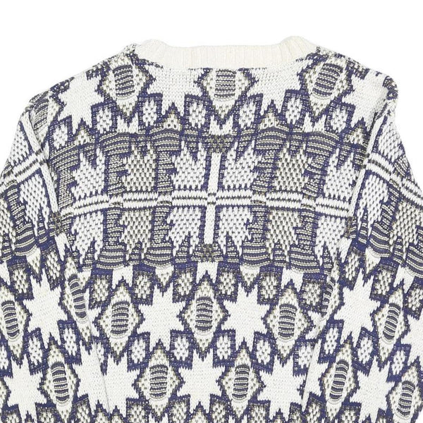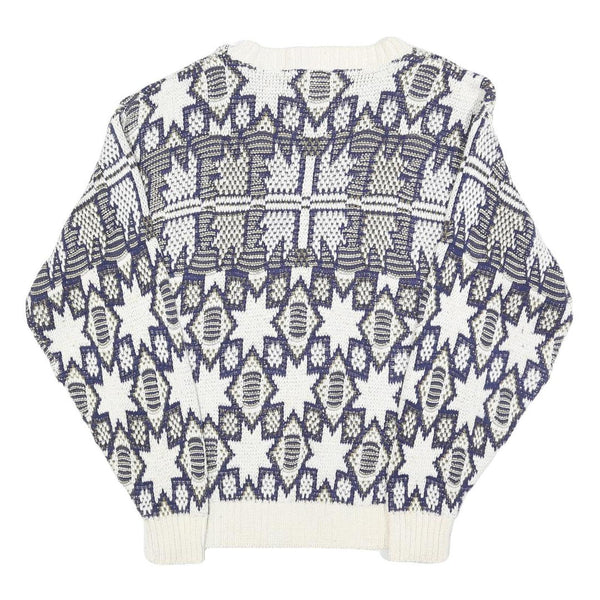 GOLDEN PYRAMID Womens White & Navy Patterned Cotton Jumper Crew Neck Regular L