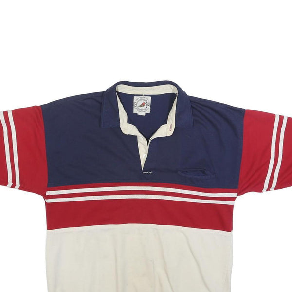 GREENLINE Mens Blue & Red & White Short Sleeve Striped Polo Shirt M Rugby Style