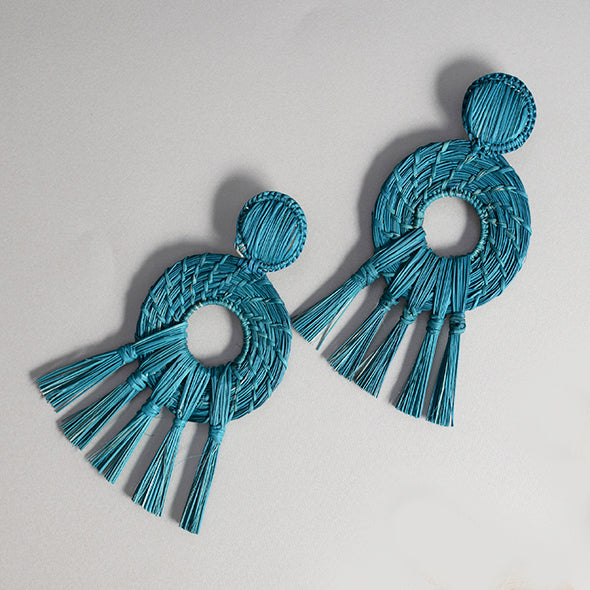 Oasis Blue Earrrings - Handmade Iraca Palm Earrings