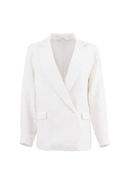 This Havana clean-lined linen oversized blazer jacket is designed with a simple straight fit, a notch collar, and a double-breasted structure, creating a cutting-edge style. If opting for a tighter fit, simply go down a size