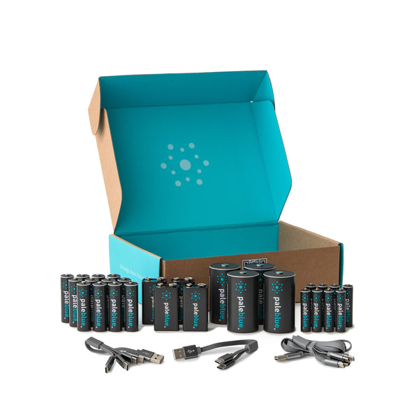 Ready to eliminate alkaline waste once and for all? This kit is a giant leap forward, packed full of all the micro-USB rechargeable batteries you need.