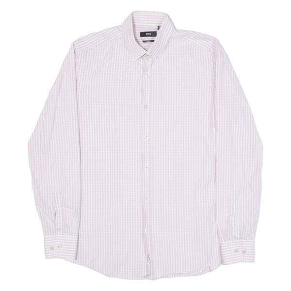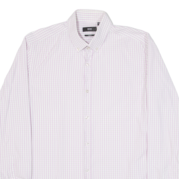 HUGO BOSS Slim Fit Mens Shirt Purple Gingham Long Sleeve M