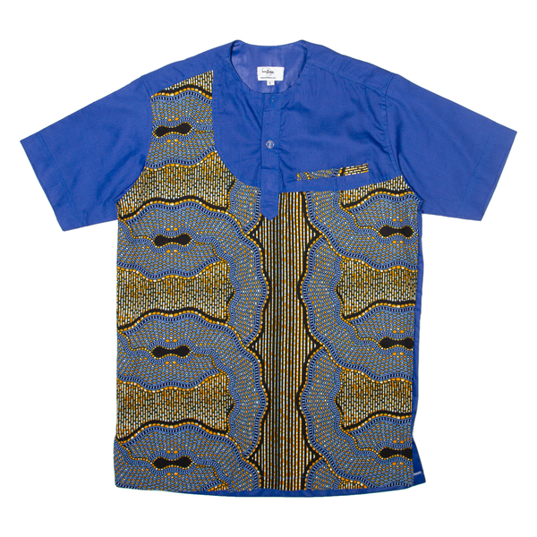 INSIDE AFRICA Mens Shirt Blue Crazy Pattern L