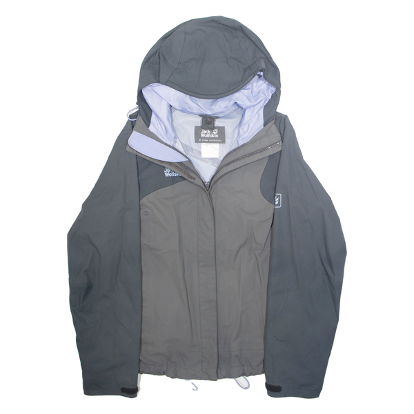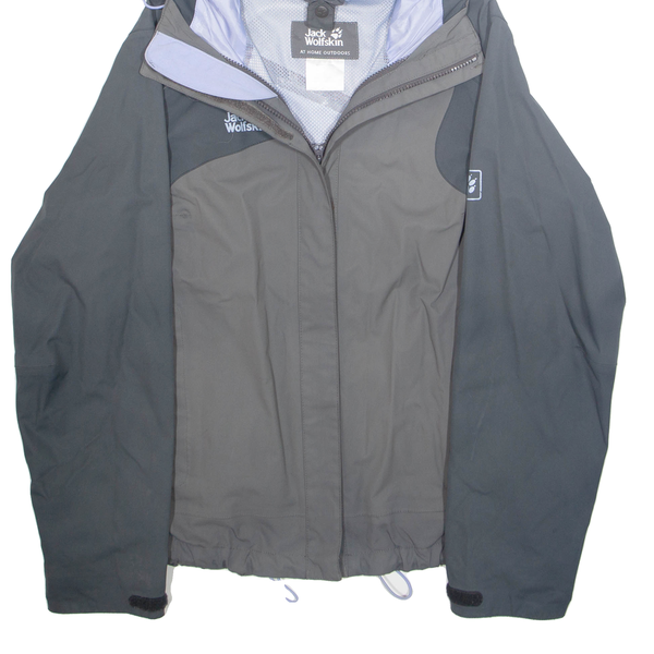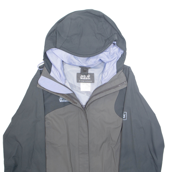JACK WOLFSKIN Mesh Lined Womens Rain Jacket Grey Hooded M