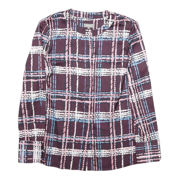 Jaeger womens plum blue pink checked long sleeve round neck shirt m elegant