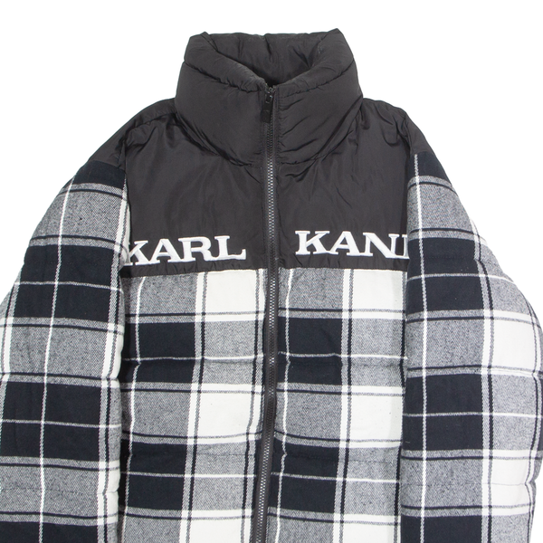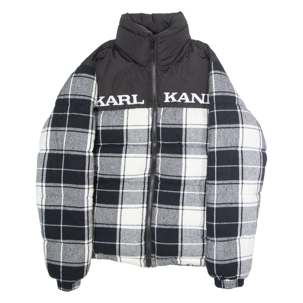 KARL KANI Mens Puffer Jacket Black Flannel Check XS