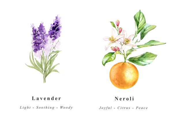 - Lavender - Relaxing and calming scent. Steam distilled from flowering tops of French Lavender shrubs.