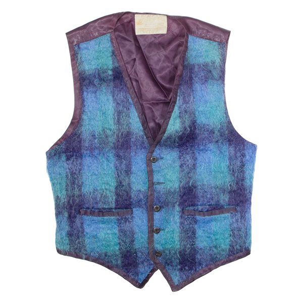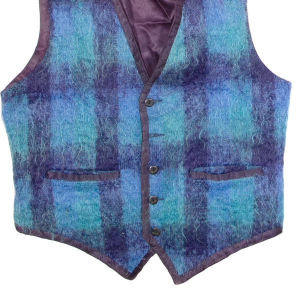 KEMP BLAIR Mens Blazer Waistcoat Blue Wool 90s Plaid S