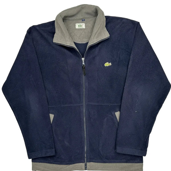 Navy Fleece Jacket With Grey Accents, Small Lacoste Logo On Chest.