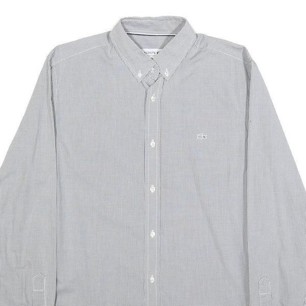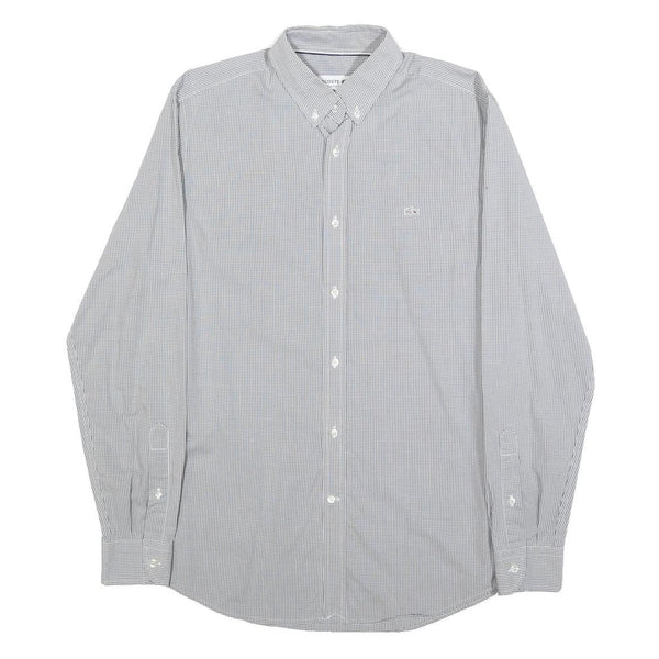 LACOSTE Mens Grey & White Check Shirt S Button-Down Collar Long Sleeve Casual