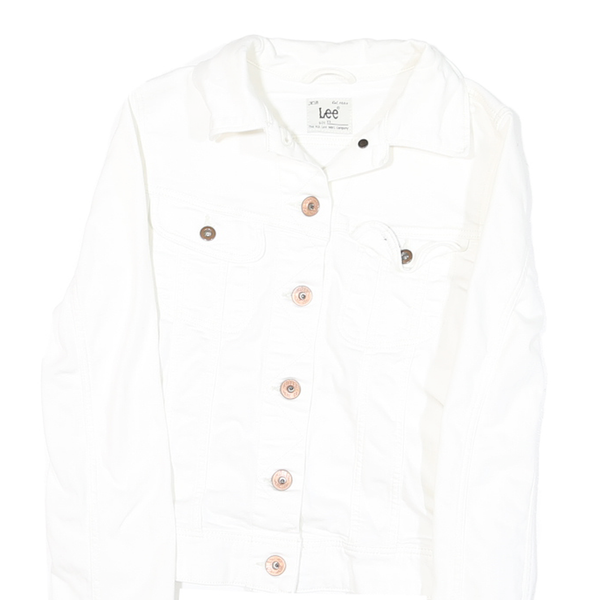 LEE Womens White Button Cotton Blend Denim Jacket XS Plain Classic Tailored