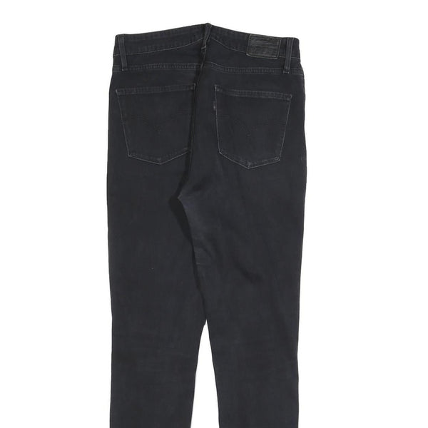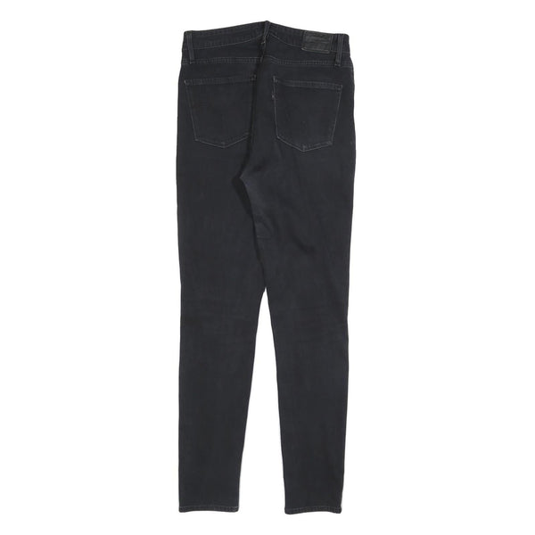 The jeans have a mid-rise waist and a skinny leg style that tapers to the ankle, creating a flattering, modern shape. Subtle fading and tonal stitching add depth to the black denim, while Levi's signature arcuate stitch pattern decorates the back pockets, confirming its authentic branding.
