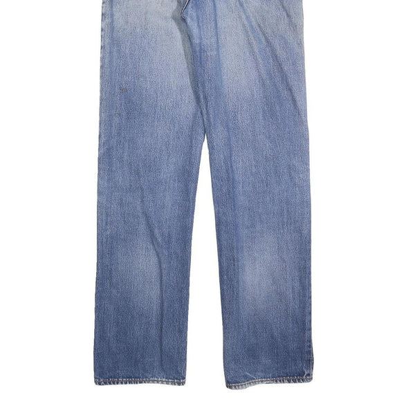Designed with a relaxed fit through the hips and thighs, these jeans provide a comfortable and casual look. The straight leg profile and medium rise make them versatile for everyday wear. Notable signs of wear and slight discoloration marks are present, reflecting their fair pre-loved condition. Perfect for those who appreciate vintage style and authentic Levi's craftsmanship.