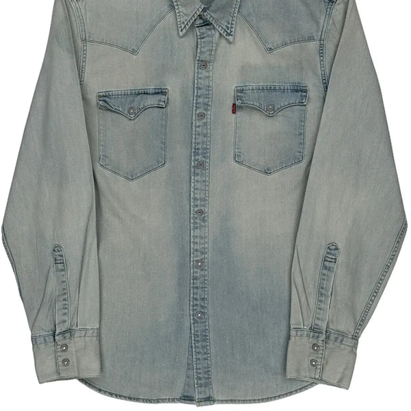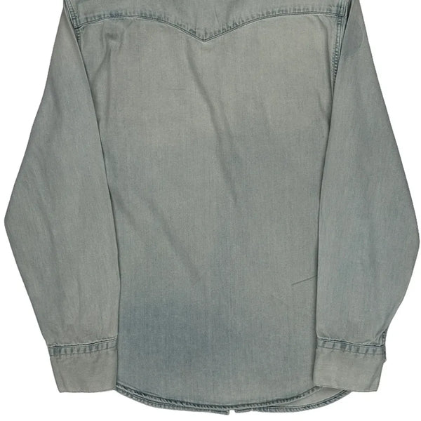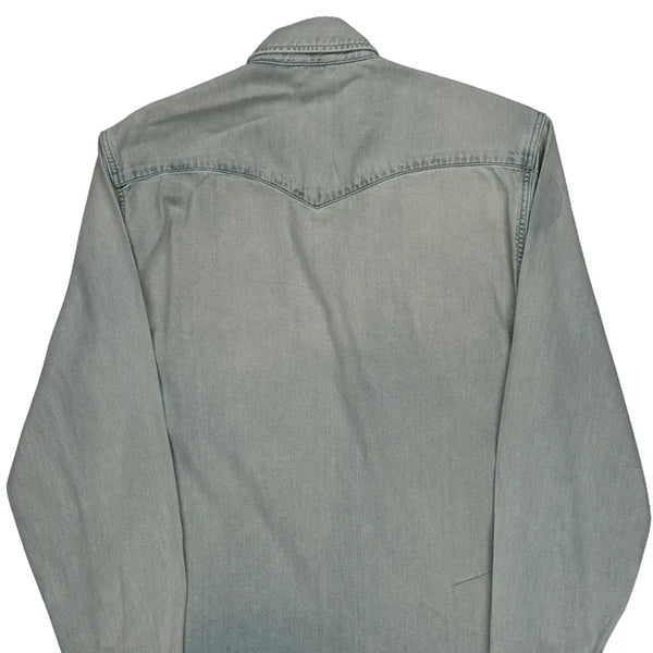 Classic Light Wash Denim Shirt With Button-Down Front And Chest Pockets.