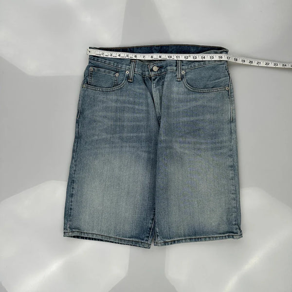 Levis Denim Shorts, fit a 33″ Waist and 10″ inseam.