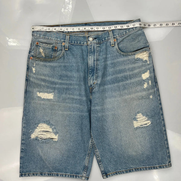 Levis Denim Shorts, fit a 36″ Waist and 12″ inseam.