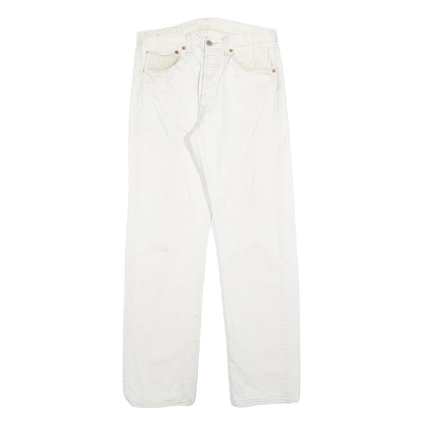LEVI'S Mens Cotton Blend White Regular Straight Trousers W32 L31 Button Closure