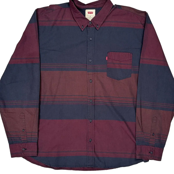 Levis Shirt With Burgundy And Blue Horizontal Stripes