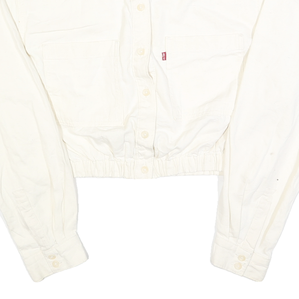 Levi's womens white cotton cropped button jacket l plain long sleeve casual