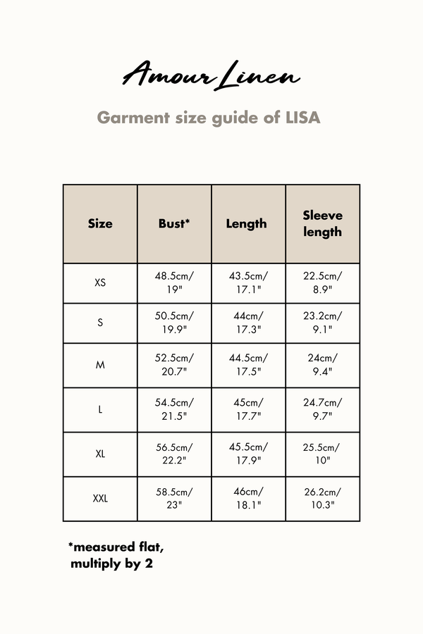 AmourLinen Size Guide