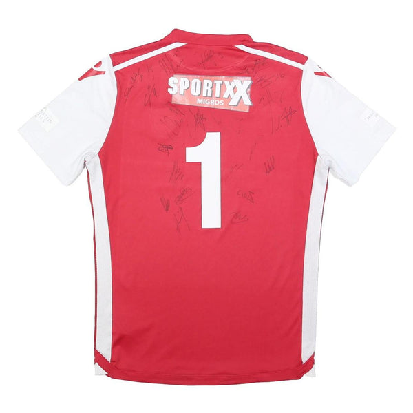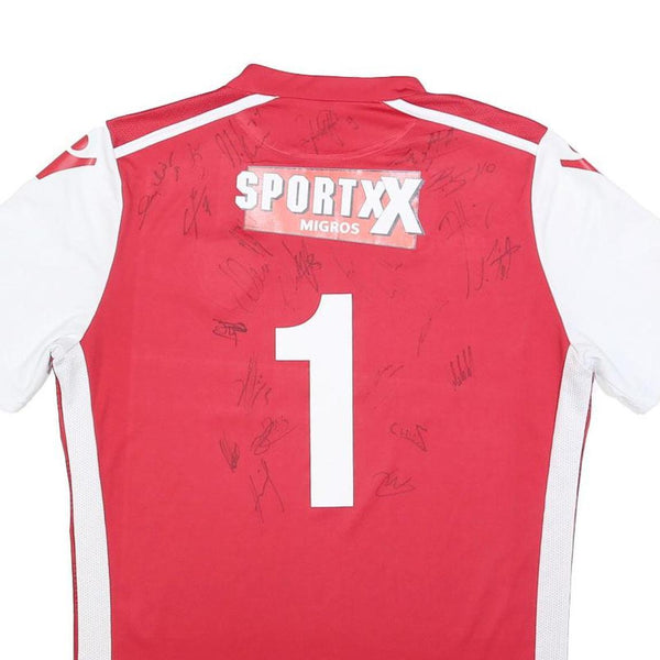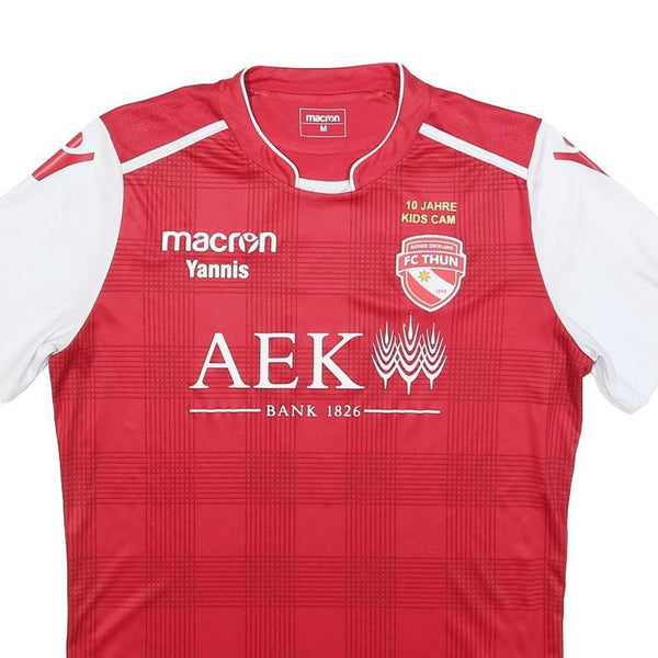 MACRON Mens Red & White FC Thun Football Shirt M Short Sleeve Round Neck
