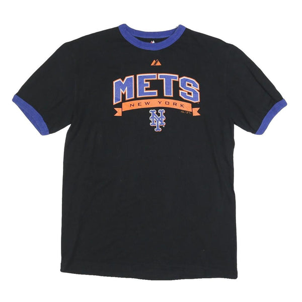 MAJESTIC Mens Black & Blue Mets Graphic T-Shirt M Short Sleeve Crew Neck