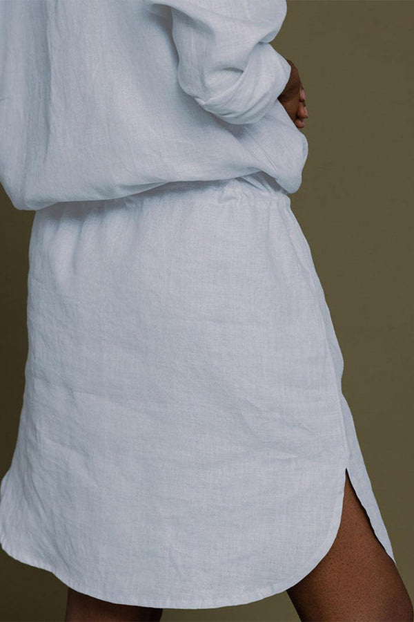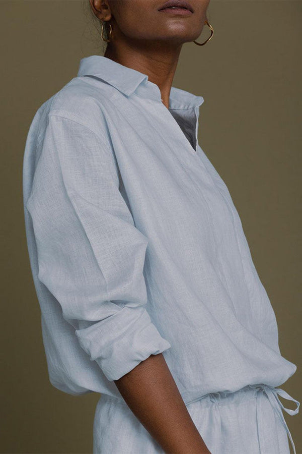 Subtle sophistication and contemporary style come together in this collared shirt dress with a drawstring waist and oversized front pocket.