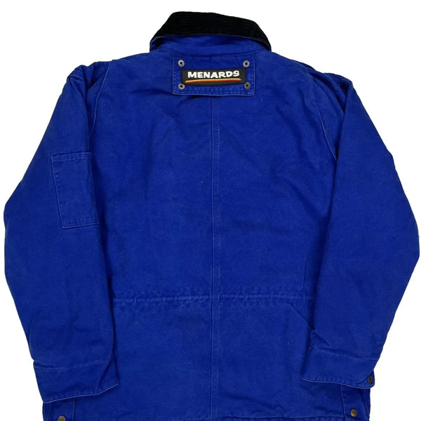 Blue Jacket With Menards Logo, No Visible Marks Or Faults.