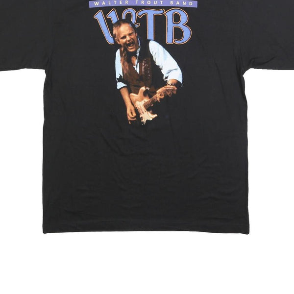 Mens Black Walter Trout Band Graphic T-Shirt XL Short Sleeve Crew Neck Vintage
