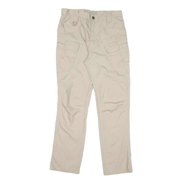 Mens Cotton Blend Beige Regular Fit Straight Leg Trousers W30 L30 Casual Wear