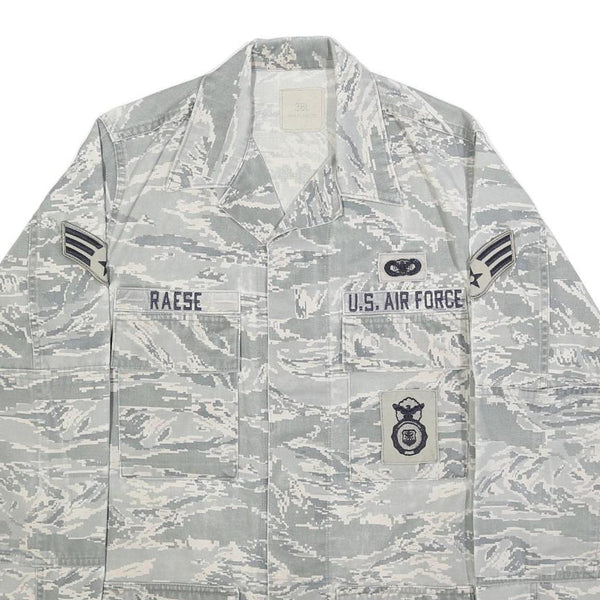 Mens Grey Cotton Blend Camouflage Military Style Jacket S Button Closure