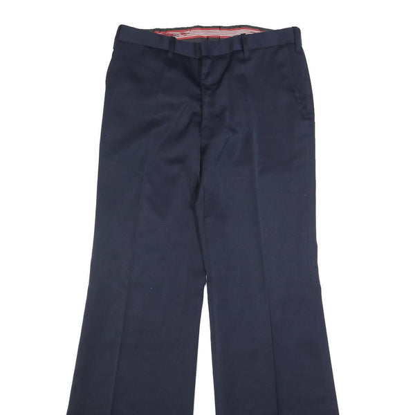 Mens Navy Relaxed Wide-Leg Trousers W32 L35 Formal Classic Zip Pockets