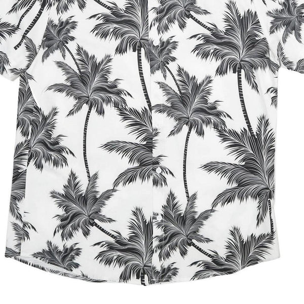 Mens White & Black Palm Tree Short Sleeve Shirt XL Lightweight Summer Casual