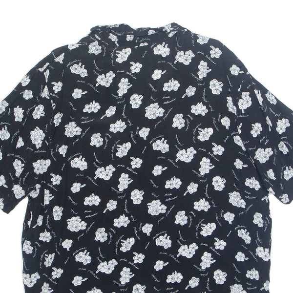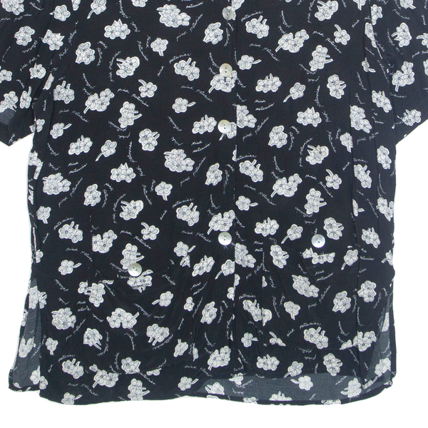 MIXIT Womens Printed Shirt Black Collared Floral L