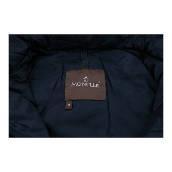 Notes: Garment is labelled as size 0 in Moncler's own sizing, which translates to a small in women's sizing. Exterior material composition is 100% nylon. Coat is very long in the body and reaches the knees.