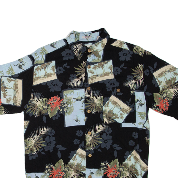 NATURAL ISSUE Mens Hawaiian Shirt Black Crazy Pattern S