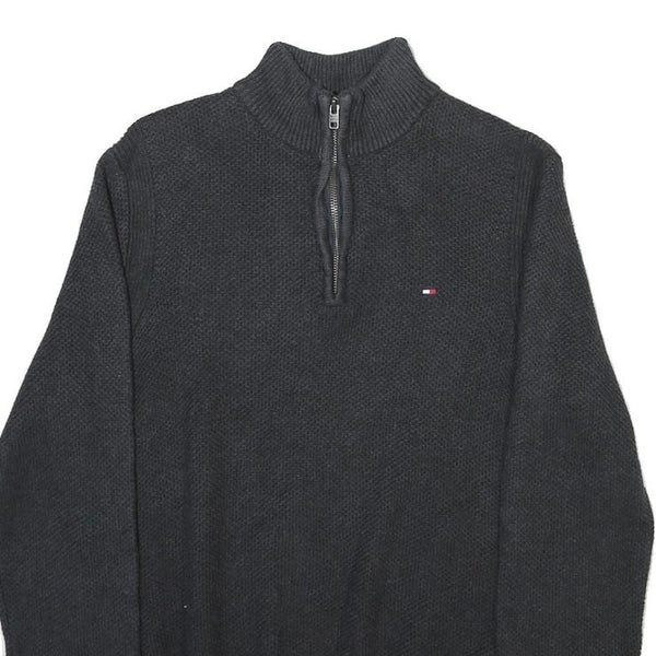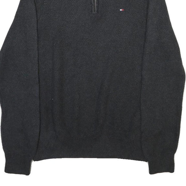Nautica mens black patterned pullover quarter zip cotton blend jumper m