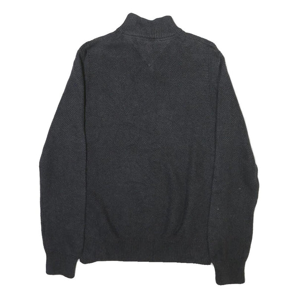 NAUTICA Mens Black Patterned Pullover Quarter Zip Cotton Blend Jumper M