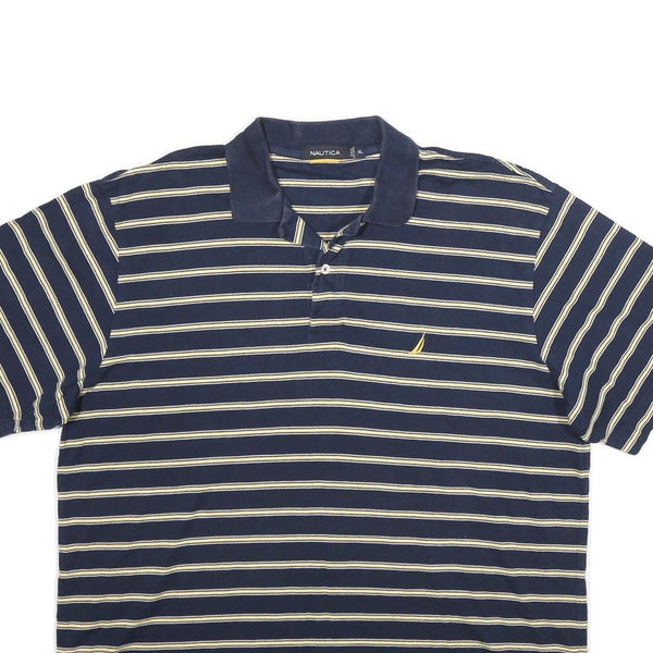NAUTICA Mens Blue & Cream Striped Short Sleeve Polo Shirt XL Cotton Casual