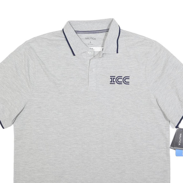 NAUTICA Mens Grey Polo Shirt Short Sleeve Cotton Blend L Classic ICC Logo
